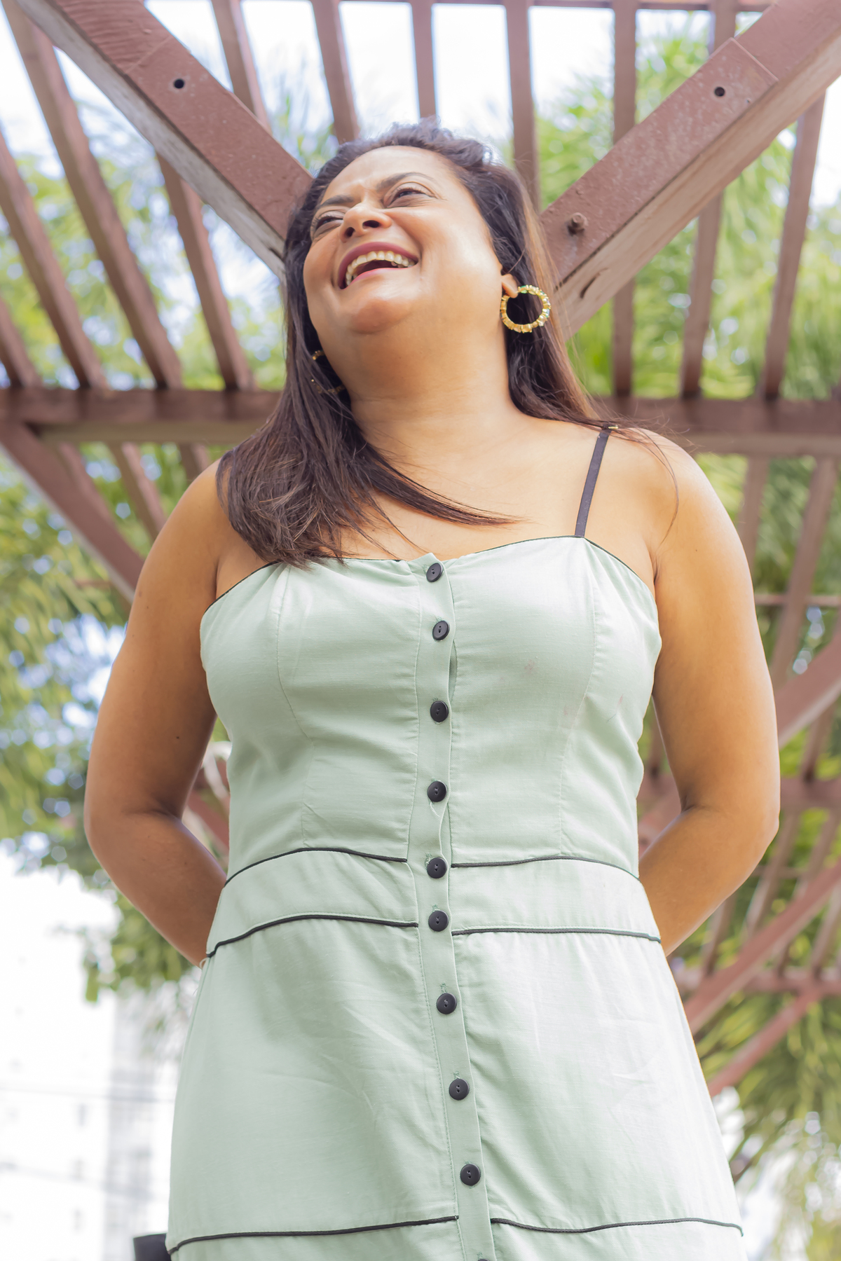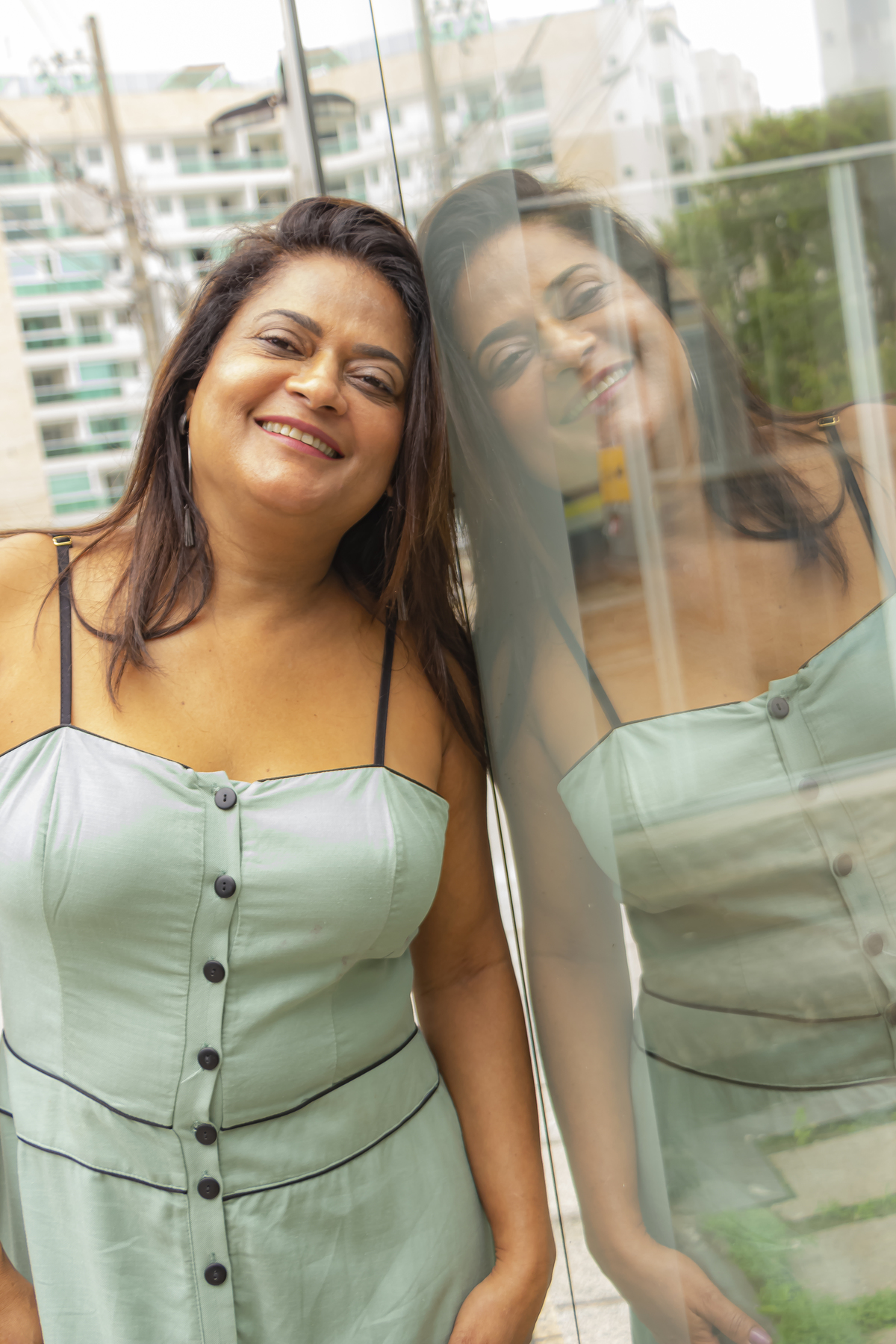 E não poderia ser diferente, né? Essa é a Dália, a essência dessa mulher é a alegria de viver! Nós fizemos o ensaio feminino dela na pracinha da Estácio, em Jardim Camburi, que é pertinho da casa dela e por isso foi super prático! O dia estava nublado, mas mesmo assim o resultado ficou incrível!